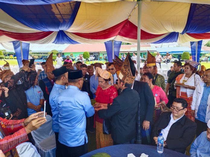 Simalungun – Bakal Calon Bupati dan Wakil Bupati Kabupaten Simalungun H. Anton Ahmad Saragih dan Benny Saragih menggelar upacara adat pemberangkatan dan deklarasi di halaman hotel Simalungun City sebelum berangkat untuk mendaftar ke Komisi Pemilihan Umum (KPU) Simalungun, Kamis (29/8/2024).