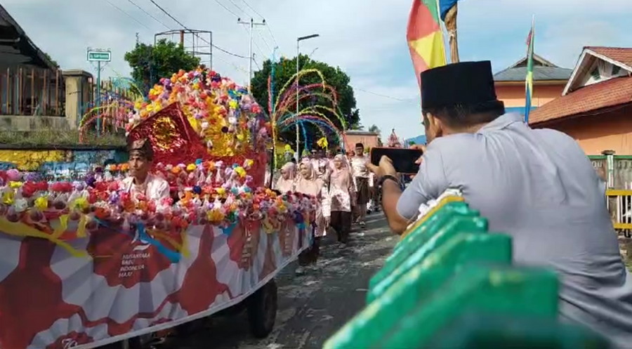 Rute pawai yang dimulai dari Masjid Al-Furqon, Kelurahan Pelimpak, hingga Masjid Jami Sya Airillah di Kampung Air Raya ini disambut meriah oleh warga.