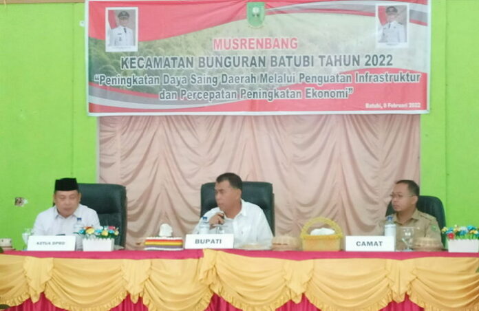Natuna – Bupati Natuna, Wan Siswandi kembali hadir dan membuka langsung Musrenbang Tingkat Kecamatan Tahun 2022. Kali ini Wan Siswandi membuka Musrenbang di Kecamatan Batubi, Selasa (8/2) di Aula Kantor Desa Gunung Putri.