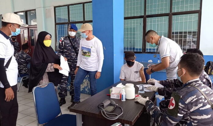 Bursakota.co.id, Natuna – Sejumlah tenaga vaksinator Pangkalan TNI AL (Lanal) Ranai kembali melayani vaksinasi terhadap pelaku usaha transportasi laut, pekerja pelabuhan serta Anak Buah Kapal (ABK) di Pelabuhan Tanjung Payung Penagi, Jumat pagi (16/07/21).