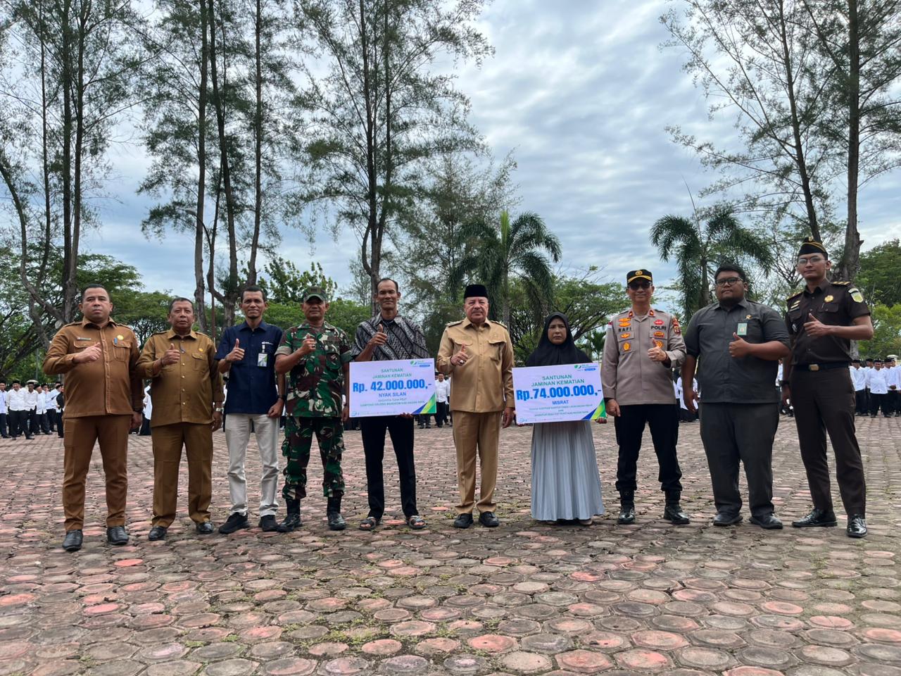 Nagan Raya – BPJS Ketenagakerjaan menegaskan komitmennya dalam memberikan perlindungan jaminan sosial ketenagakerjaan melalui penyerahan santunan kepada ahli waris peserta di halaman Kantor Bupati, Kompleks Perkantoran Suka Makmue, Kabupaten Nagan Raya, Selasa (14/4).
