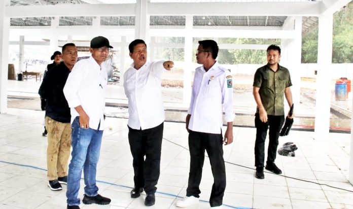 Dilokasi pembangunan pasar tersebut, Bupati melakukan pengecekan setiap sudut dari bangunan dengan teliti untuk memastikan semuanya berjalan sesuai rencana bangunan.