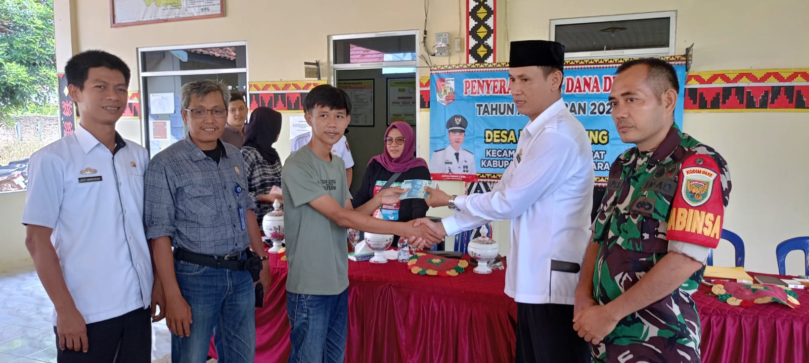 Acara pembagian BLT kepada 30 KPM di Kantor desa Bumi Nabung dihadiri Camat, BPD, Babinsa, Babinkamtibmas, perangkat desa dan masyarakat penerima BLT desa Bumi Nabung Kecamatan Abung Barat.(Bk/Ita)