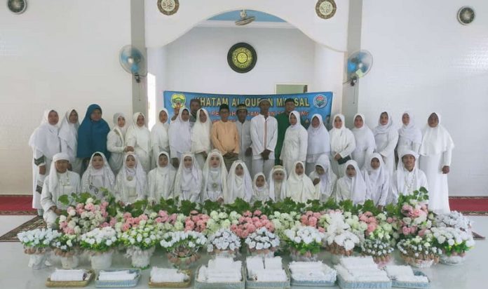 Bursakota.co.id.Lingga – Pemdes Pena’ah, Kecamatan Senayang, Kabupaten Lingga menggelar Khataman Al’quran di Masjid AL-QONA’AH yang di ikuti 14 orang santri dan santriwati, Rabu 13 Juli 2022.