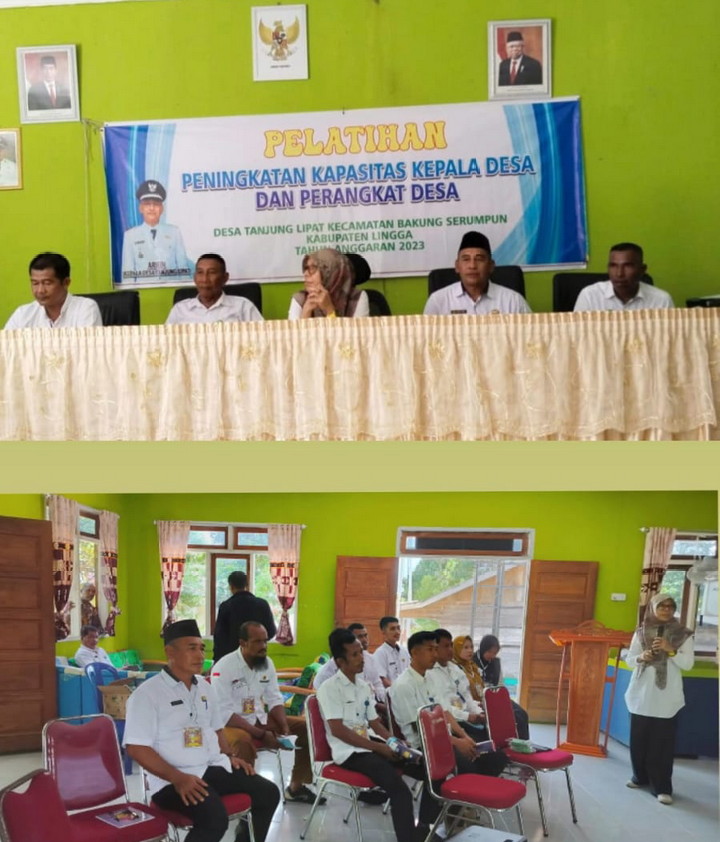 Kades Tanjung Lipat Aripin dalam hal ini berpesan, kepada peserta pelatihan agar dapat menyerap materi yang di bahawakan oleh, Kadis DPMD Lingga dan Pelaksana Bidang Pembangunan, Pengelolaan Keuangan dan aset Desa (DPMD) Lingga Faisal, S,IP.