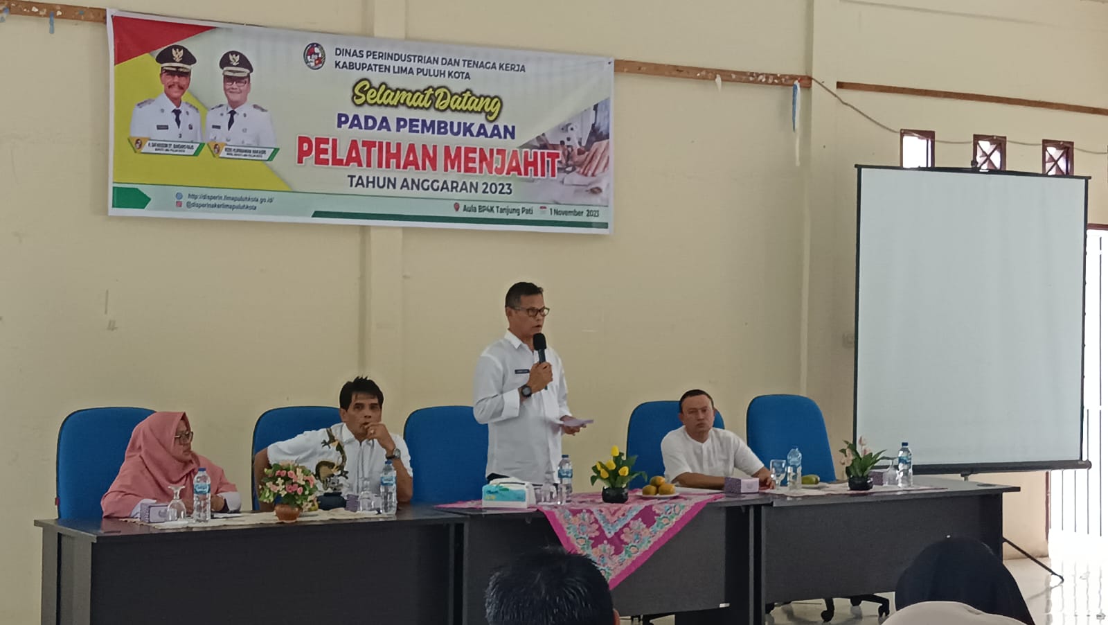 Kegiatan pelatihan menjahit tersebut dibuka oleh Bupati Lima Puluh Kota, Safaruddin diwakili oleh Asisten I, Herman Azmar yang didampingi oleh anggota DPRD, Marsanova Andesra, Sekretaris Dinas Perindustrian dan Tenaga Kerja, Afrizal serta Kabid Tenaga Kerja, Hatifah.