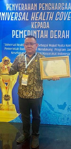 Asisten II Bidang Perekonomian Sekretariat Daerah Kabupaten Natuna, Ir Basri menghadiri Penyerahan Penghargaan “Universal Health Coverage” (UHC)