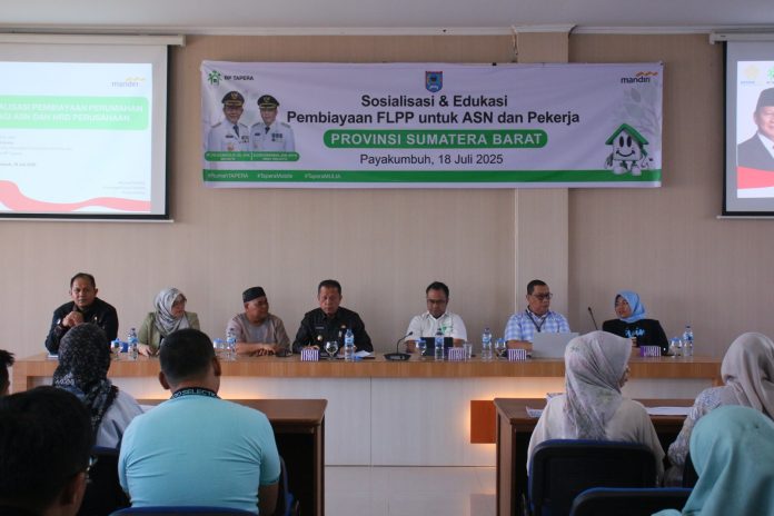 Bursakota.co.id, Payakumbuh – Pemerintah Kota (Pemko) Payakumbuh menggelar sosialisasi pembiayaan perumahan bagi aparatur sipil negara (ASN) dan pekerja di Aula Dinas Pendidikan, Jumat (18/7/2025).