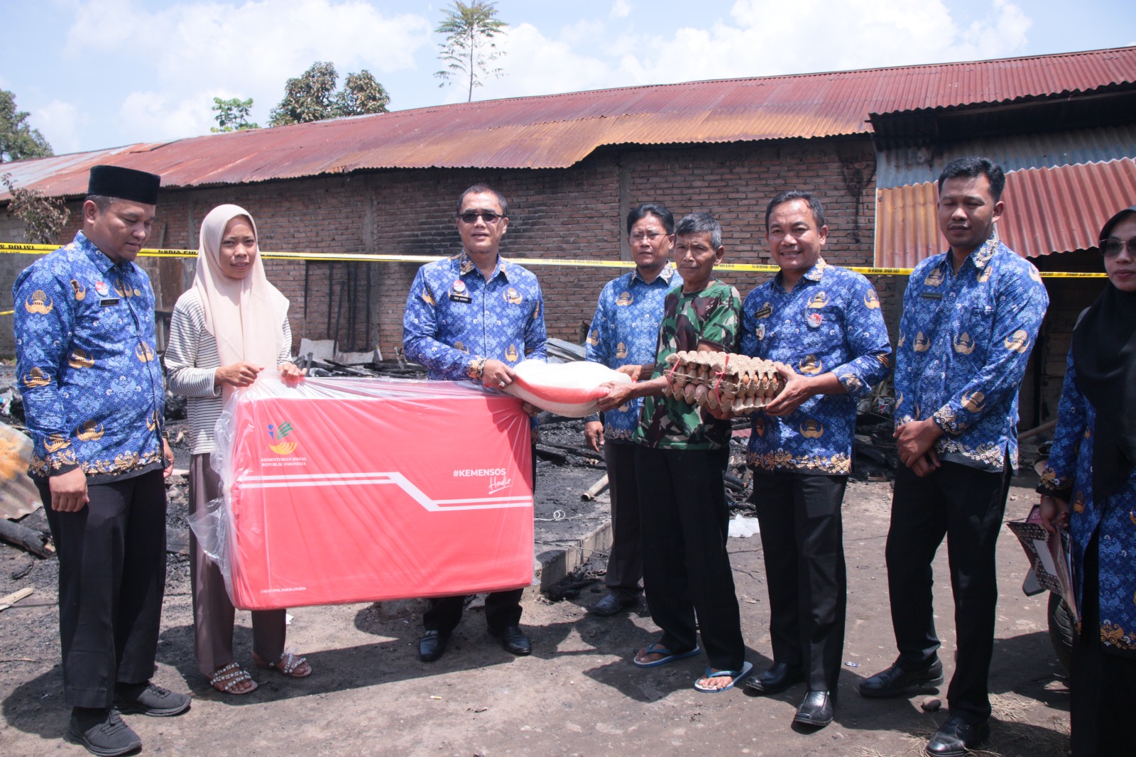 Bantuan yang diserahkan untuk dua keluarga terdampak tersebut, berupa bantuan makanan seperti beras, minyak goreng, telur, dan lainnya. Selanjutnya juga diserahkan bantuan sandang teko, selimut, kasur, makanan anak, dan jenis lainnya.