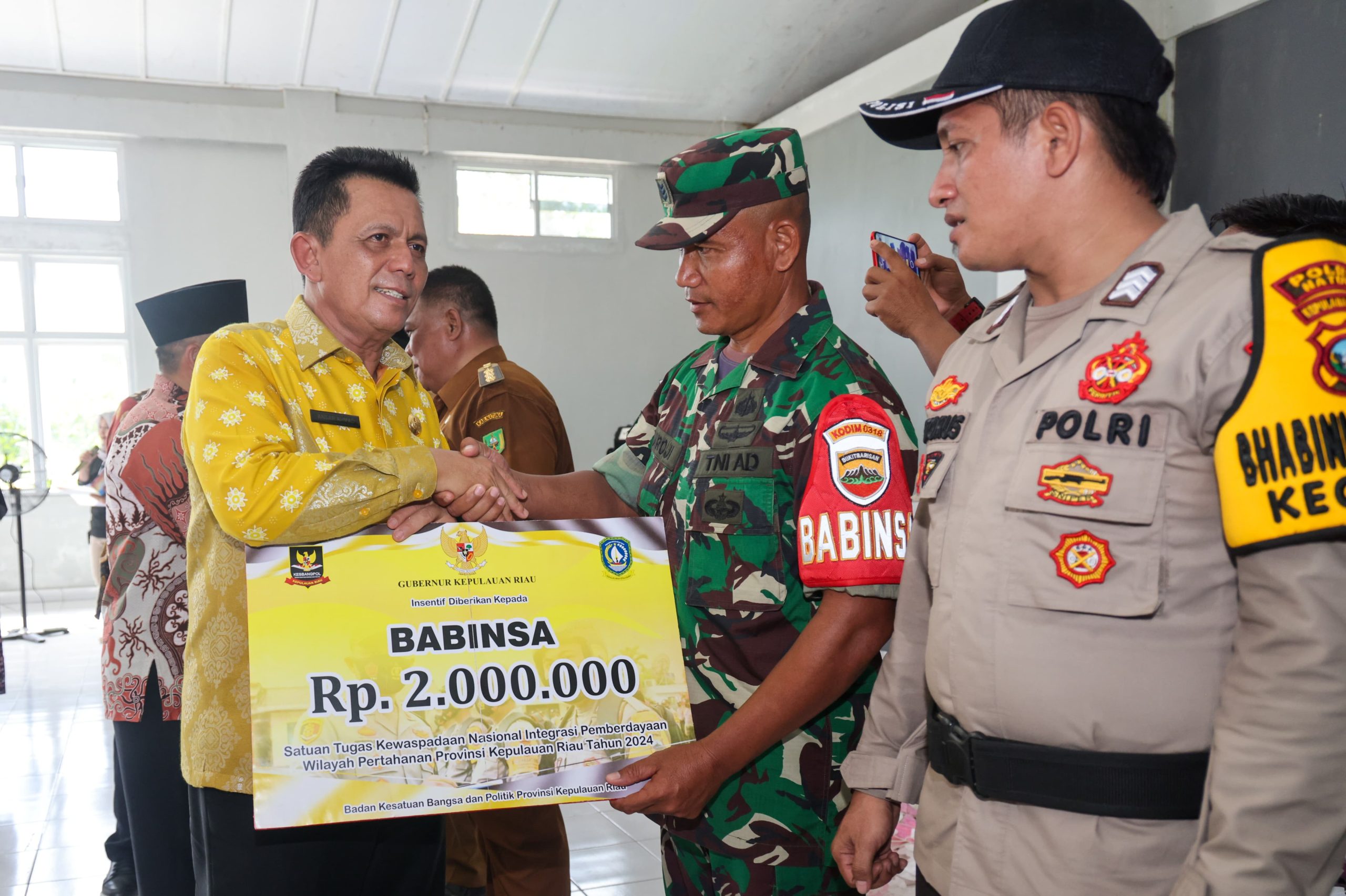 Bursakota.co.id, Natuna – Pemerintah Provinsi Kepulauan Riau mulai tahun ini memberikan insentif bagi petugas Babinsa, Bhabinkamtibmas, dan Babinpotmar yang bertugas di provinsi ini.