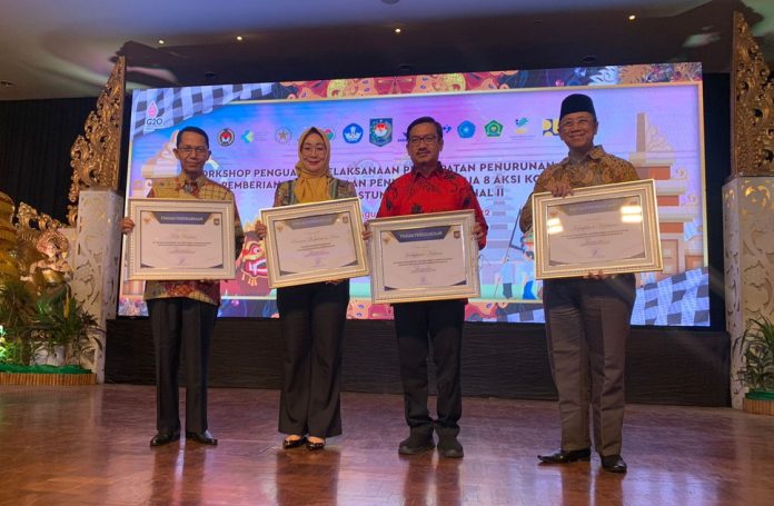 Penghargaan diterima oleh Sekda Natuna, Boy Wijanarko di Hotel Prime Plaza Sanur Jakarta, (31/8) setelah melalui penilaian dari kinerja delapan aksi konvergensi pencegahan dan penurunan stunting di Kepulauan Riau Melalui surat kementerian Dalam Negeri Republik Indonesia Nomor 440/2611/Bangda.