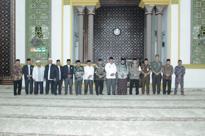 Ket Foto : Pemerintah Kabupaten Asahan menggelar Tabligh Akbar dan Dzikir bersama di Masjid Agung H. Achmad Bakrie Kisaran, Asahan, Sumatera Utara, dalam rangka Hari Jadi Kabupaten Asahan ke-77, Kamis (16/03/2023).