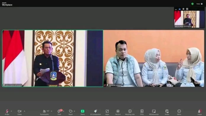 Lingga – Bupati Kabupaten Lingga M. Nizar bersama Ketua TP PKK Kabupaten Lingga Ny. Maratusholisa Nizar mengikuti Peringatan Hari Keluarga Nasional (HARGANAS)secara virtual melalui Zoom Meeting pada Rabu (16/07/2025).