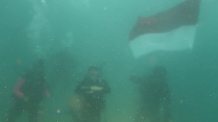 Peringati HUT RI ke-75, Lanal Ranai Bersama Komunitas Selam Natuna Kibarkan Bendera Merah Putih di Bawah Laut