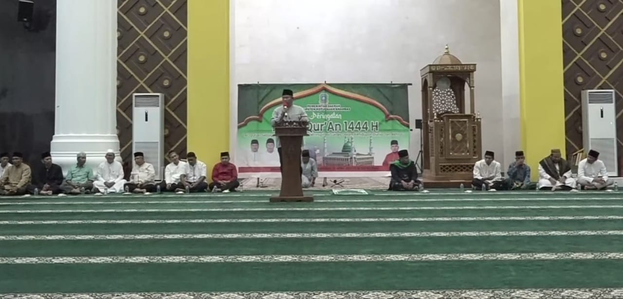 Dalam sambutannya Bupati Kepulauan Anambas Abdul Haris, mengucapkan syukur atas karunia yang di berikan oleh Allah SWT, bertepatan pada hari ini dimana seluruh umat muslim di penjuru dunia mengingat malam yang penuh dengan bersejarah yaitu malam Nuzul Qur’an terkhususnya untuk Pemkab dan Masyarakat Anambas masih bisa bertemu dengan malam turunnya Al-Qur’an,