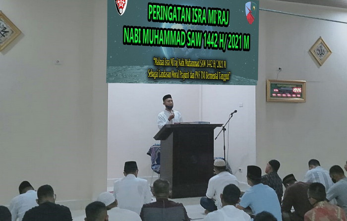 Dengan mengangkat tema “Maknai Isra’ Mi’raj Nabi Muhammad SAW 1442 H/2021 M sebagai landasan moral prajurit dan PNS TNI Bermental tangguh disampaikan Tausiyah singkat oleh ustadz Irsarullah Yusuf, S.Thi. seusai melaksanakan sholat magrib berjamaah.