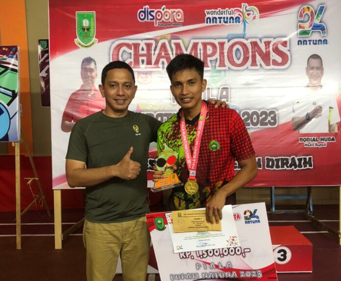 Serda M. Husni Fajri yang merupakan prajurit Kodim 0318/Natuna berhasil menyabet juara 1 pada turnamen Tenis Meja Piala Bupati Natuna tahun 2023.