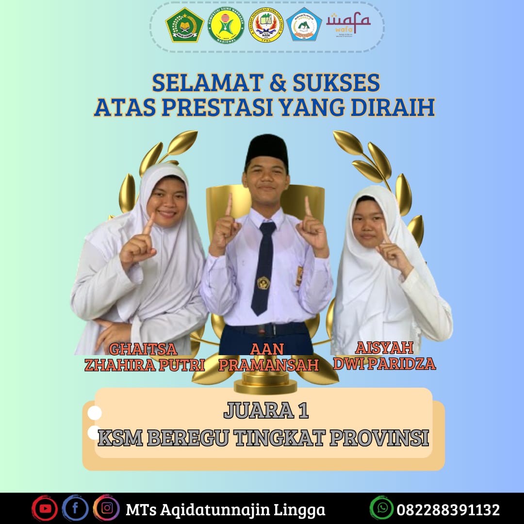 Lingga – MTs Aqidatunnajin sukses meraih juara pertama dalam Kompetisi Sains Madrasah (KSM) kategori beregu, yang diselenggarakan secara online pada Kamis, 1 Agustus 2024.