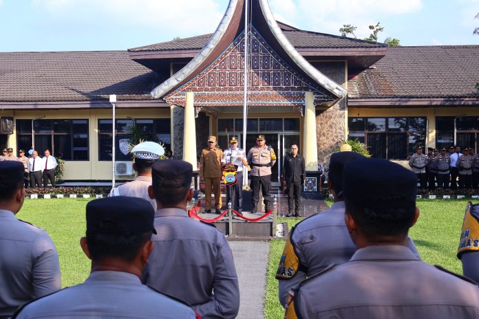 Bursakota.co.id, Payakumbuh – Wali Kota Payakumbuh Zulmaeta, memimpin apel gelar pasukan Operasi Ketupat Singgalang Tahun 2026 yang dilaksanakan di halaman Mako Polres Payakumbuh, Kamis (12/3/2026) sore.