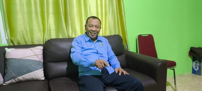 Direktur PDAM Tirta Nusa Kabupaten Natuna, Zaharuddin saat memberikan keterangan di Ruang Kerjanya.