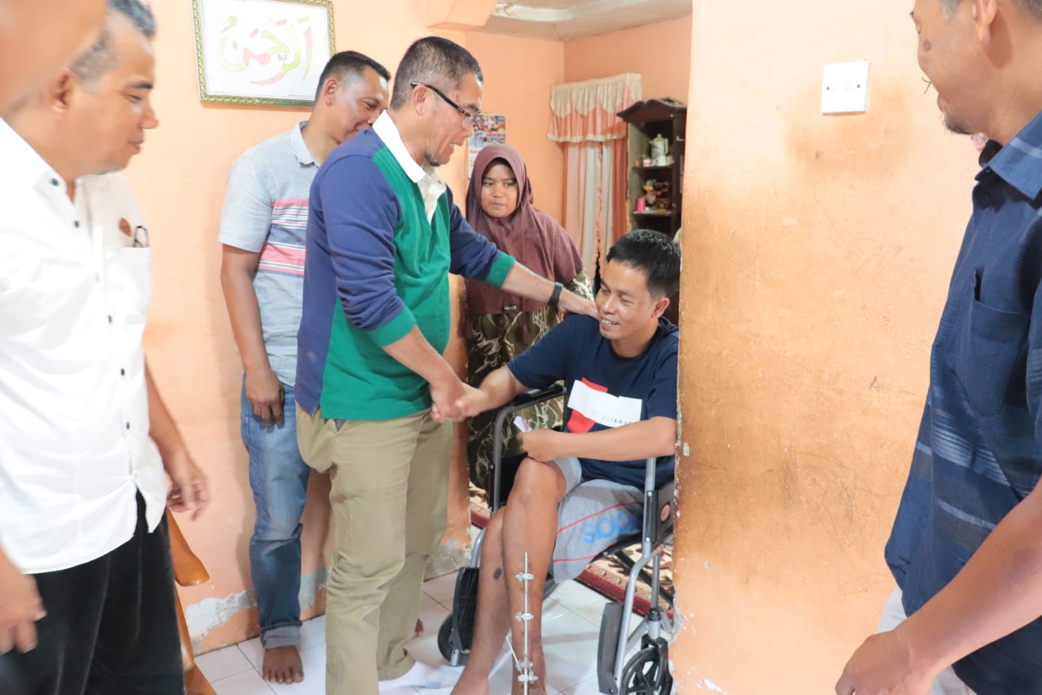 Bursakota.co.id, Payakumbuh – Penjabat Wali Kota Payakumbuh Rida Ananda menjenguk Ramadanus, Warga RT2/RW1, Kelurahan Tiakar yang mengalami kecelakaan lalulintas sehingga menyebabkan kaki kanannya patah dan harus dipasang pen.