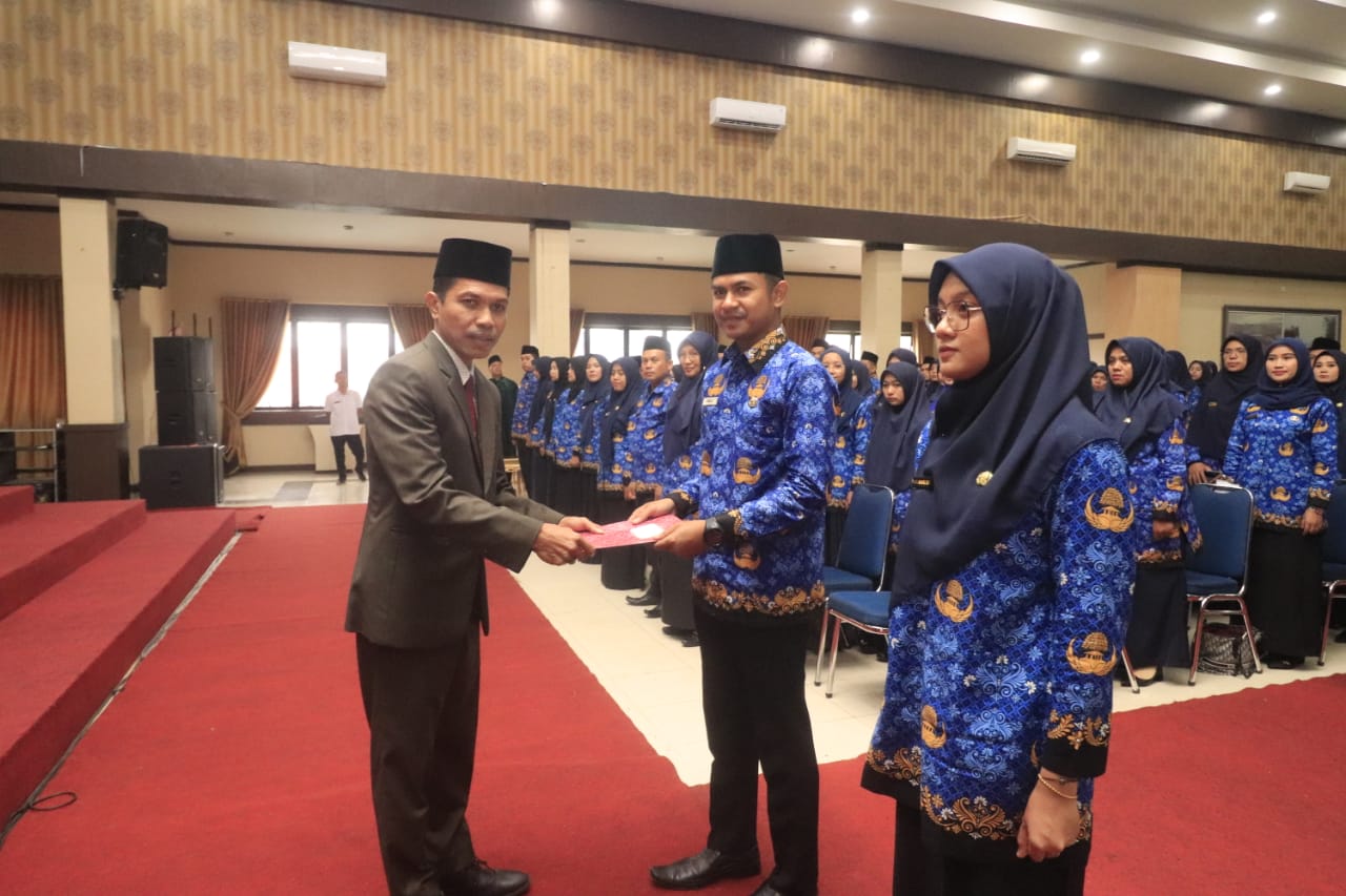 Plt Sekda Dafrul Pasi mewakili Pj Wali Kota Payakumbuh dalam sambutannya menyampaikan ucapan selamat kepada 213 guru dan 21 tenaga teknis yang dilantik secara resmi setelah proses panjang hingga berstatus P3K pada hari ini.
