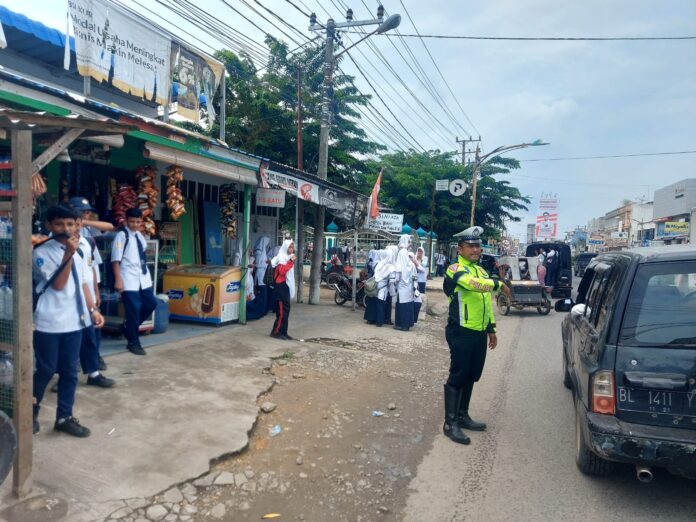 “Strong point ini dilakukan personel pada pukul 12.00 WIB atau bertepatan dengan para pelajar pulang sekolah, tujuannya untuk melayani siswa saat menyeberang jalan serta mencegah terjadinya kemacetan,” ujarnya.