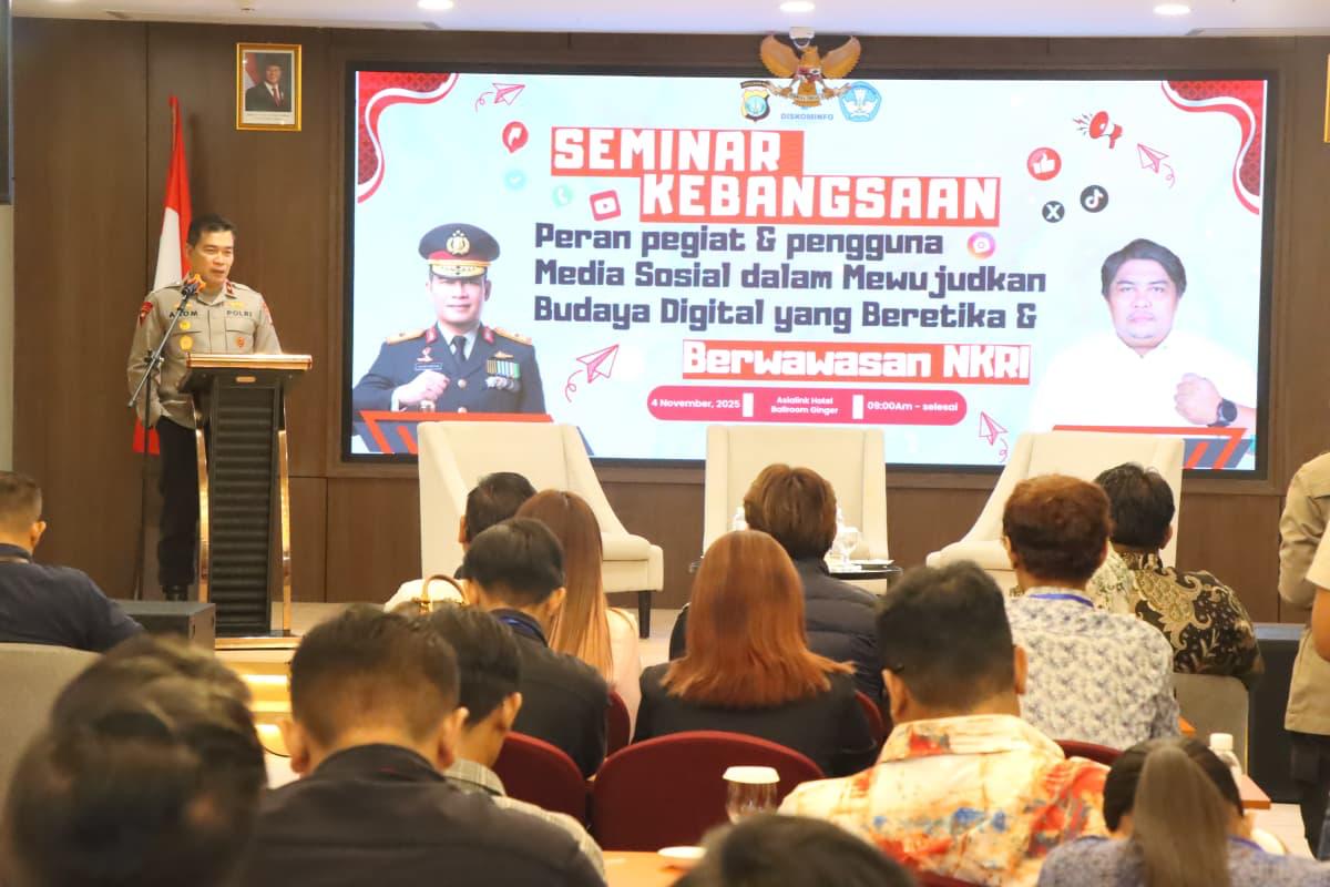 Batam – Polda Kepri laksanakan kegiatan Seminar Kebangsaan dengan tema “Peran Pegiat dan Pengguna Media Sosial dalam Mewujudkan Budaya Digital yang Beretika dan Berwawasan NKRI”, yang dilaksanakan di Hotel Asia Link Batam, Selasa (4/11/2025).