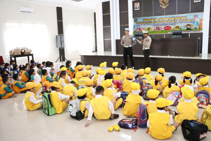 Bursakota.co.id, Lingga – Polisi Sahabat anak (Polsanak), Satuan Lalu Lintas Polres Lingga berikan pengetahuan profesi Polri dan pengenalan lingkungan Polres Lingga kepada siswa- siswi TK Kemala Bhayangkari, TK Pembina Dabo Singkep, TK Perwari Dabo Singkep Mapolres Lingga Kabupaten Lingga, Jumat (19/5/2023).
