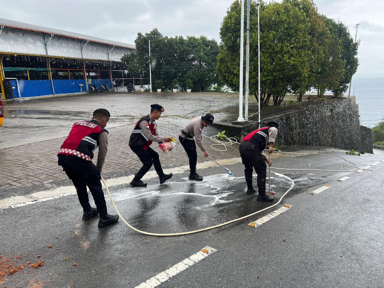 Bursakota.co.id, Anambas – Anggota Polres Kepulauan Anambas melalui Sat Samapta Polres Kepulauan Anambas bertindak cepat membersihkan tumpahan solar yang berada di simpang Masjid Agung dan jalan Bayhill, Tarempa, Kecamatan Siantan, Kabupaten Kepulauan Anambas, Kamis (19/12/2024).