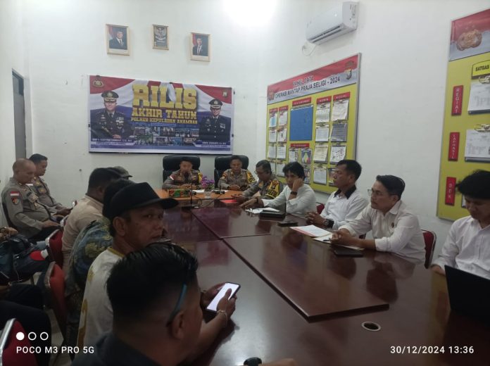 Bursakota.co.id, Anambas – Kepolisian Resor (Polres) Kepulauan Anambas, menggelar Pers Rilis Akhir Tahun 2024, Kapolres AKBP Raden Ricky Pratidiningrat ajak Masyarakat Kepulauan Anambas dukung pembangunan Anambas untuk masa depan, Senin (30/12/2024).