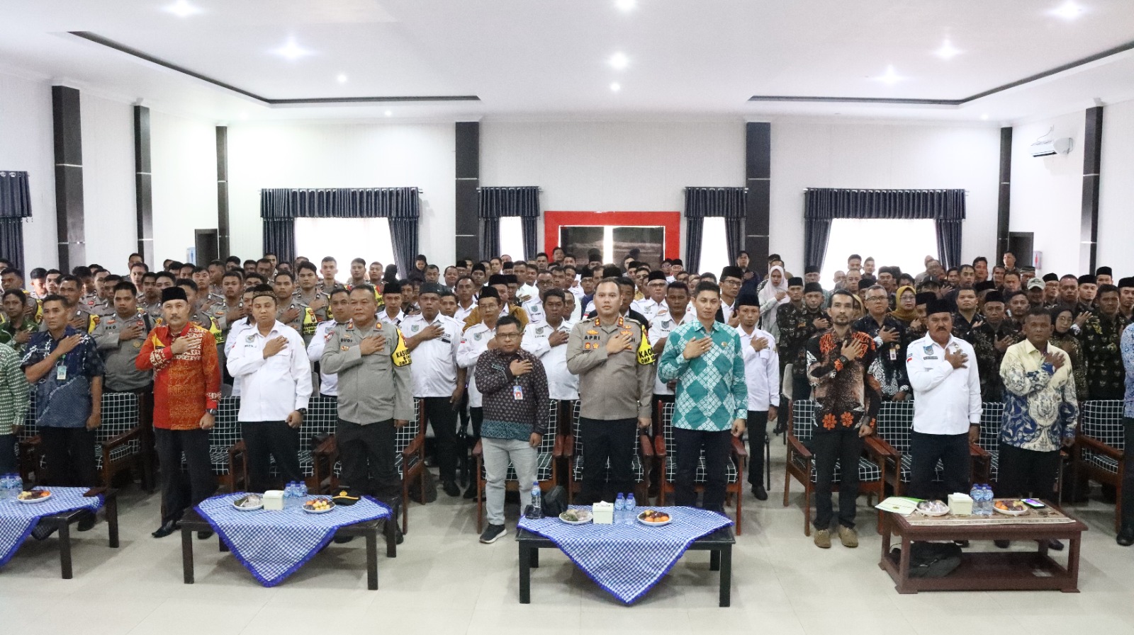 Ket Foto : Polres Lingga laksanakan kegiatan Penandatanganan Perjanjian Kerjasama Penggunaan Dana Desa dengan Asosiasi Pemerintah Desa Seluruh Indonesia (APDESI) se-Kabupaten Lingga yang bertempat di Gedung Endra Dharma Laksana Kamis, (26/09/2024).