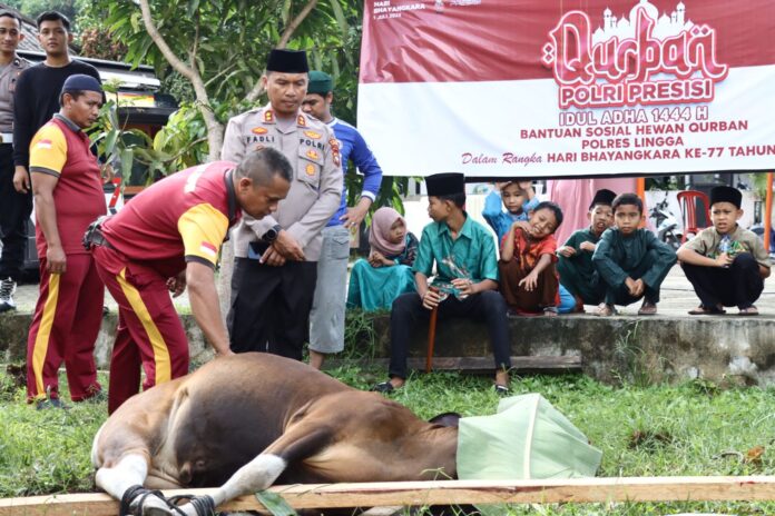 Bursakota.co.id, Lingga – Dalam rangka memperingati Hari Raya Idul Adha 1444 H, Kepolisian Resor Lingga beserta jajaran menggelar Qurban Presisi yang di laksanakan di Asrama Polisi Polsek Dabo Singkep. Kamis(29/6/2033) pagi.