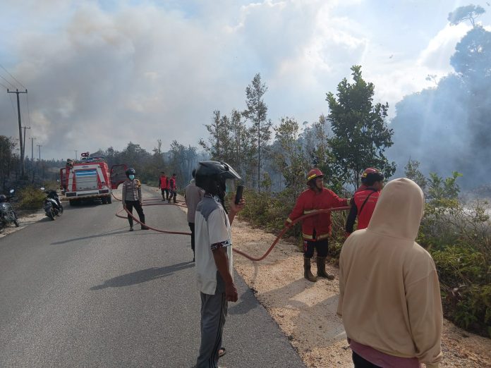 Polres Natuna Bersama Damkar dan BPBD Gerak Cepat Padamkan Karhutla di Jalan Poros Batubi–Ranai