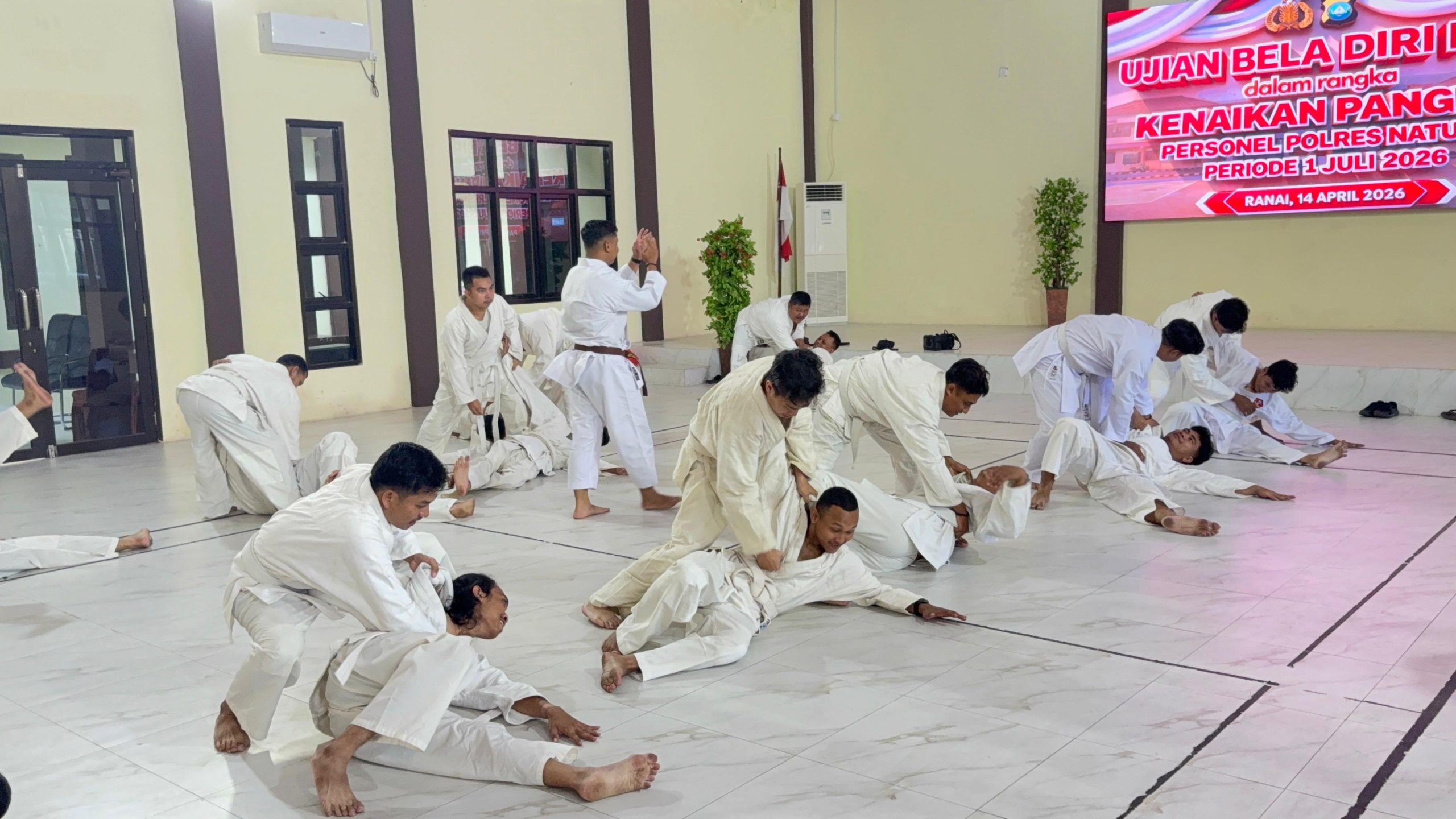 FOTO : Polres Natuna melalui Bagian Sumber Daya Manusia (SDM) melaksanakan Ujian Bela Diri Polri sebagai salah satu syarat kenaikan pangkat periode 1 Juli 2026.