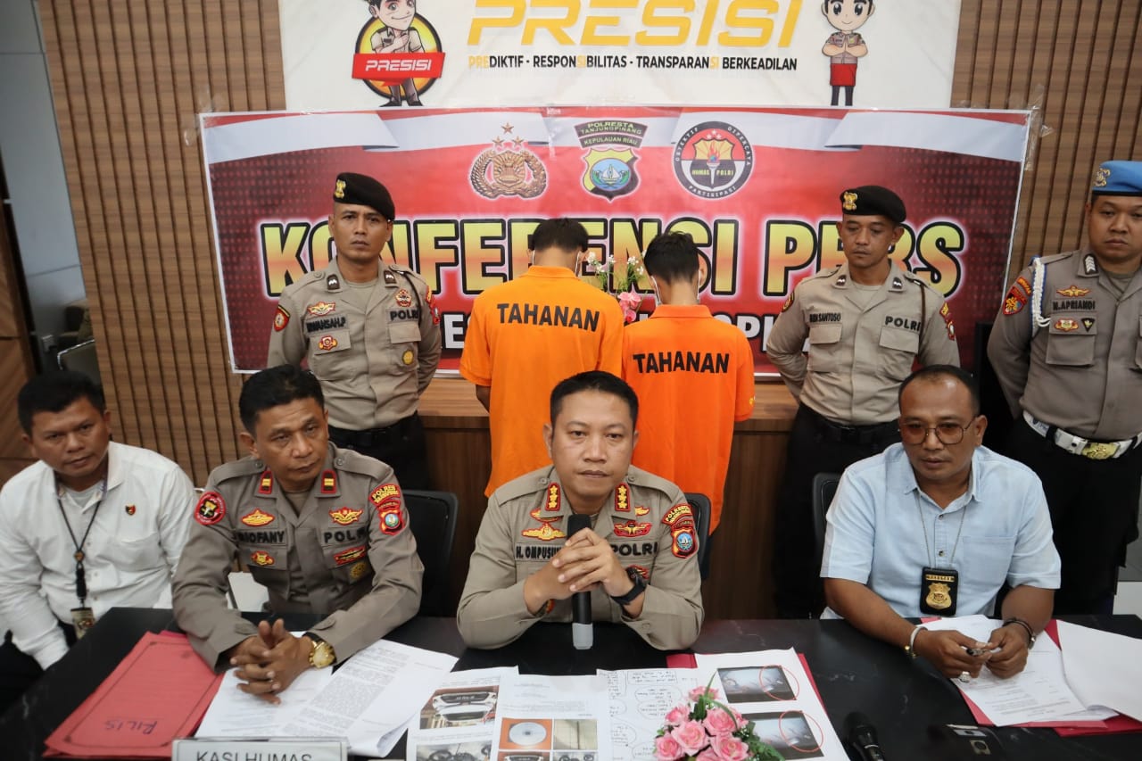Bursakota.co.id, Tanjungpinang – Polresta Tanjungpinang berhasil menangkap 2 (dua) orang pelaku pencurian sepeda motor (curanmor) di wilayah Kota Tanjungpinang, Hal tersebut disampaikan oleh Kapolresta Tanjungpinang Kombes Pol. H. Ompusunggu, S.I.K., M.Si., pada saat konferensi pers di Mapolresta Tanjungpinang, Rabu (01/03/23).