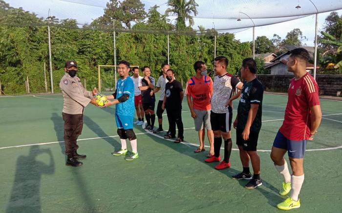 Bursakota.co.id.Lingga – Dalam rangka membina mental dan kesehatan para remaja di wilayah hukum Polsek Daik-Lingga. Kapolsek Daik – Lingga Iptu Idris S.E.Sy M.H melalui Kanit Binmas Bripka Mastur, berikan bantuan bola futsal kepada komunitas futsal Daik, Senin (15/06/2021).