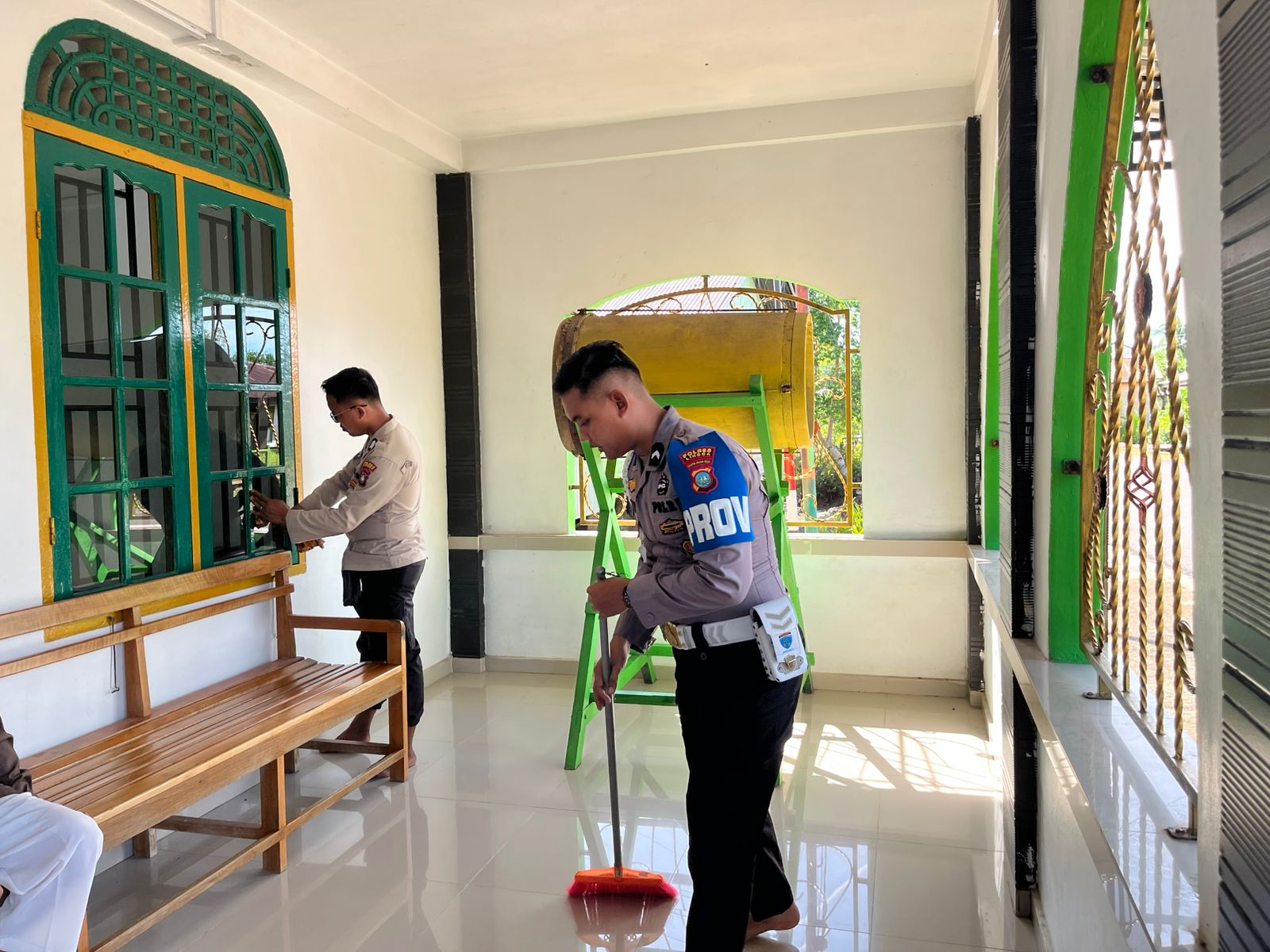 Kegiatan ini melibatkan personel Polsek bersama warga sekitar. Mereka bergotong royong membersihkan area surau, mulai dari toilet, ruang utama ibadah, teras, jendela, hingga halaman masjid. Semangat kebersamaan dan kekompakan mewarnai kegiatan tersebut.