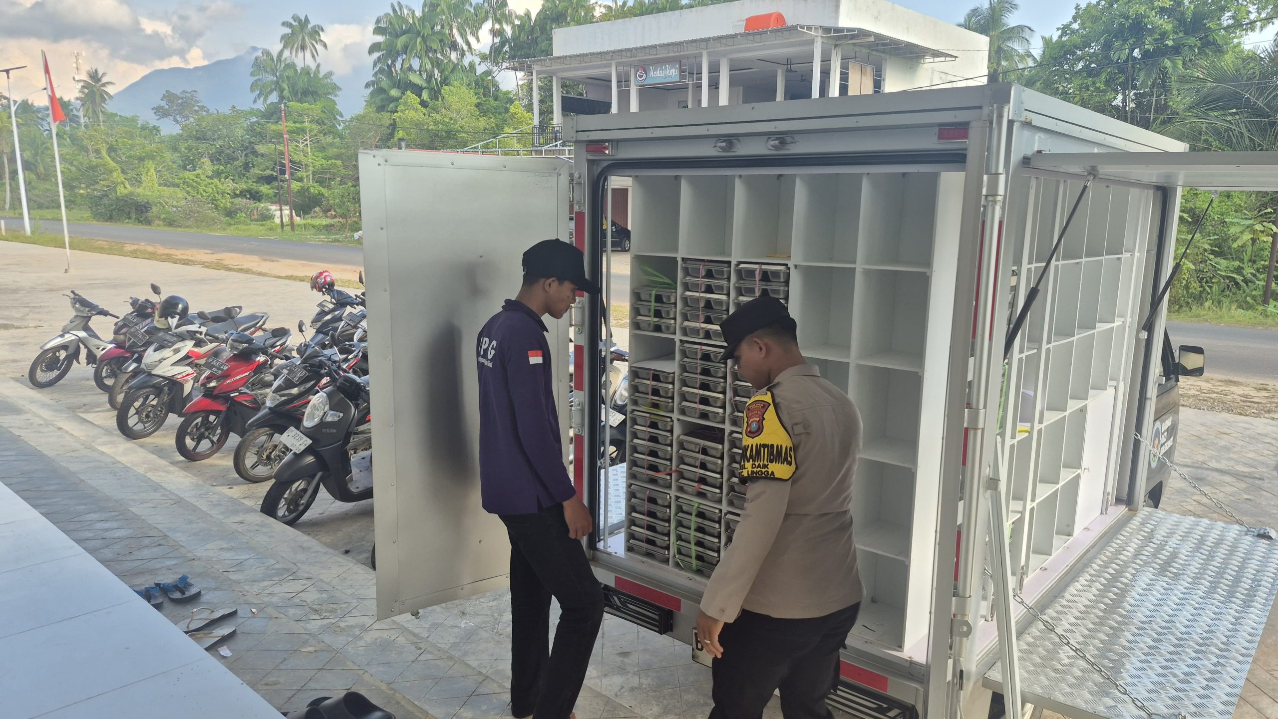 FOTO : Polsek Daik Lingga melaksanakan pengamanan dan monitoring kegiatan pendistribusian Makan Bergizi Gratis (MBG) yang diselenggarakan oleh SPPG YKB Polres Lingga di wilayah Kecamatan Lingga, Kamis (9/4/2026).