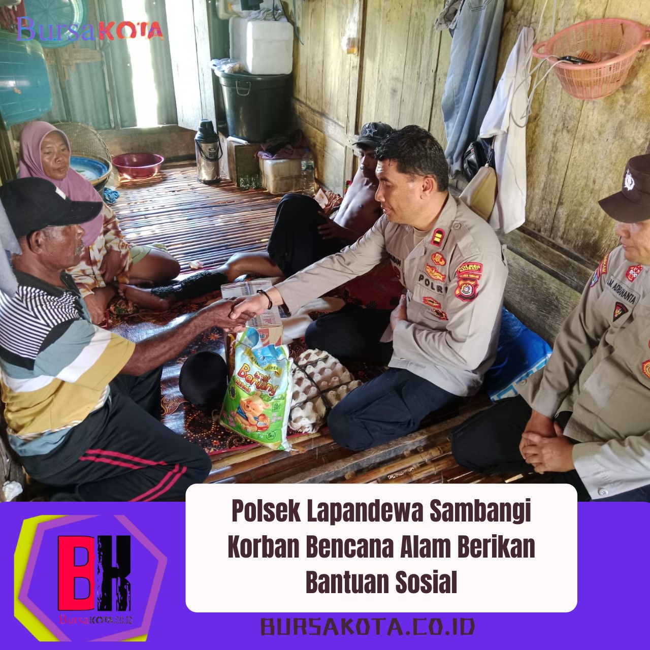 Bursakota.co.id, Buton Selatan – Sebagai wujud kepedulian terhadap masyarakat yang terdampak bencana alam angin Puting Beliung, Polsek Lapandewa menyalurkan bantuan sosial kepada warga yang mengalami musibah di desa Gaya Baru kecamatan Lapandewa kabupaten Buton Selatan (02/02/26)