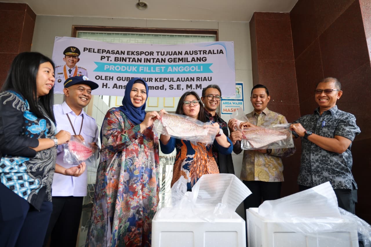 Tanjungpinang – Produk olahan perikanan dari Provinsi Kepulauan Riau kembali menembus pasar internasional. Fillet ikan anggoli yang diproduksi oleh PT Bintan Intan Gemilang diekspor ke Sydney, Australia melalui Bandara Raja Haji Fisabilillah di Tanjungpinang, Sabtu (7/3/2026).