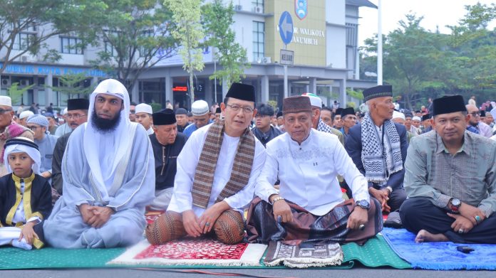 Bertindak sebagai khatib dalam kesempatan ini adalah Guru Besar UIN Imam Bonjol Padang, Duski Samad, sementara Syaikh Sa’ad Bin Yaslam Khanbary sebagai imam.