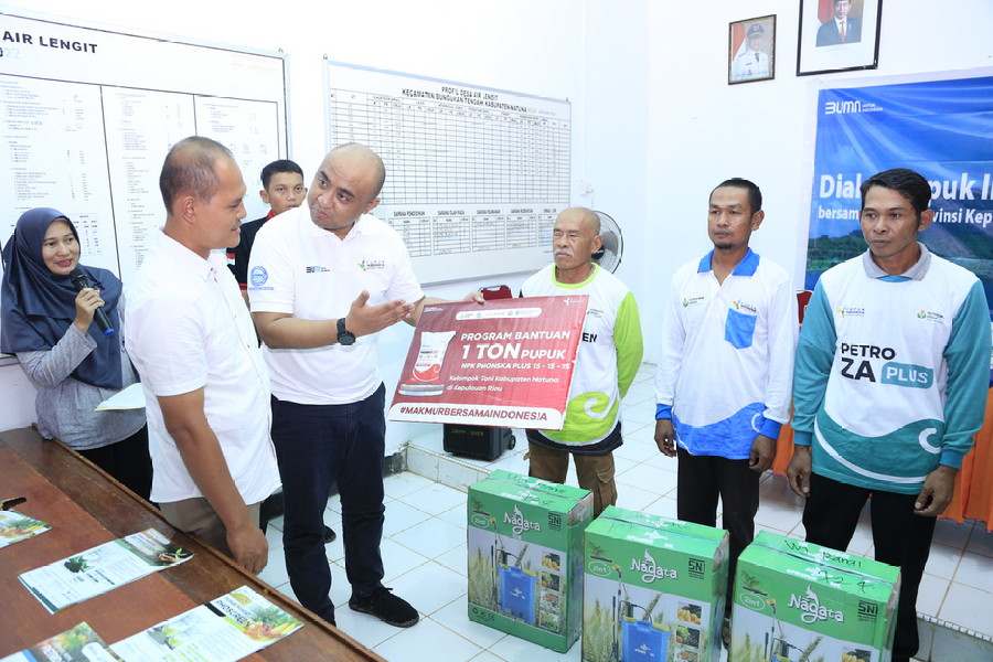 “Kami dari Pupuk Indonesia hari ini datang sebagai bagian dari tugas kami untuk melayani petani dan untuk memastikan ketersediaan pupuk bersubsidi khususnya di Natuna tetap terjaga sesuai dengan tugas yang diberikan Kementerian Pertanian kepada kami selaku BUMN sektor pupuk,” demikian ungkap Direktur Transformasi Bisnis Pupuk Indonesia, Panji Winanteya Ruky saat berdialog dengan petani Kecamatan Bunguran Tengah di Kantor Kepala Desa Air Lengit, Kabupaten Natuna, Sabtu (2/12/2023).