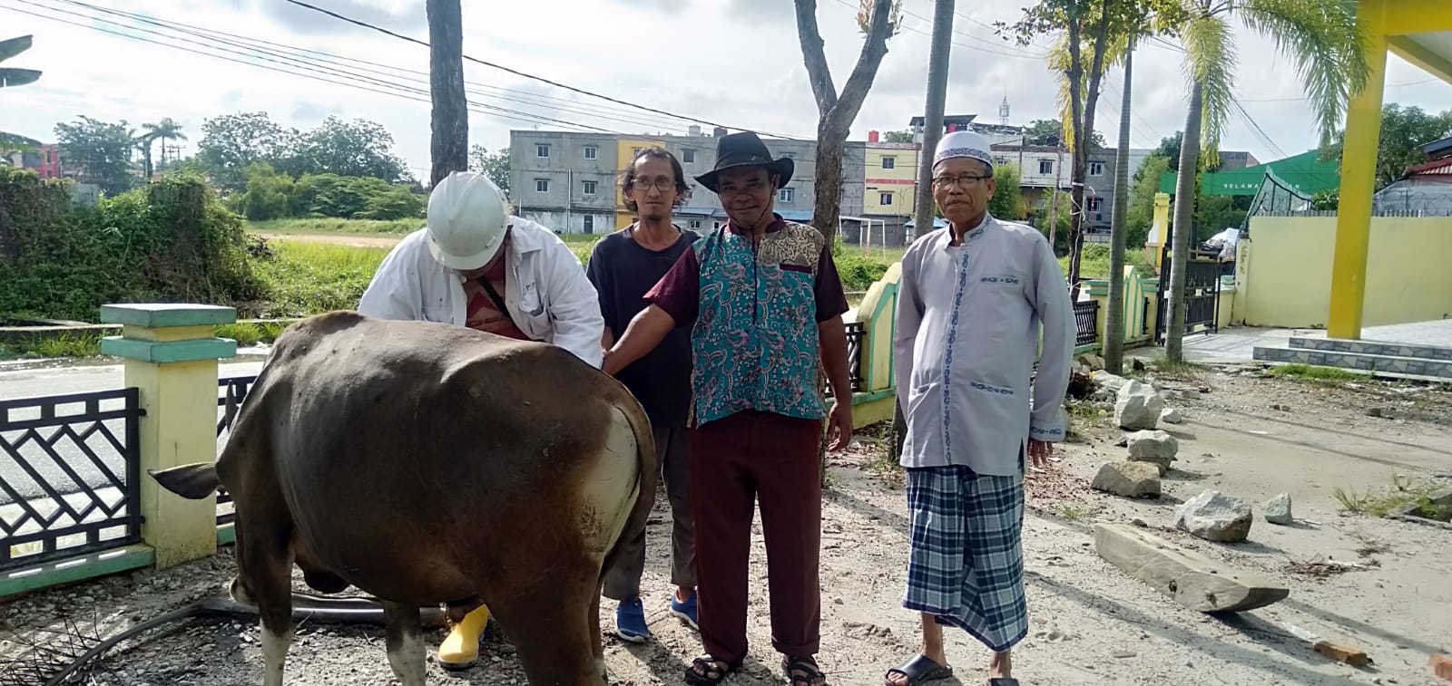 Penyerahan Hewan Kurban diikuti sejumlah anggota PWI Karimun dan diterima pengurus Pelaksanaan Kurban Masjid Jami Nurul Huda, Telaga Tujuh, Khairi.