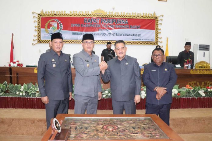 Tulangbawang Barat – Pendapatan Daerah Kabupaten Tulangbawang Barat dalam APBD Perubahan 2025 yang disetujui DPRD mengalami penurunan tajam, dari Rp972,65 miliar menjadi Rp929,27 miliar. Meski demikian, jajaran eksekutif dan legislatif tetap menyepakati Raperda Perubahan APBD tersebut dalam rapat paripurna di Gedung DPRD Tubaba, Panaragan, Rabu (6/8/2025).