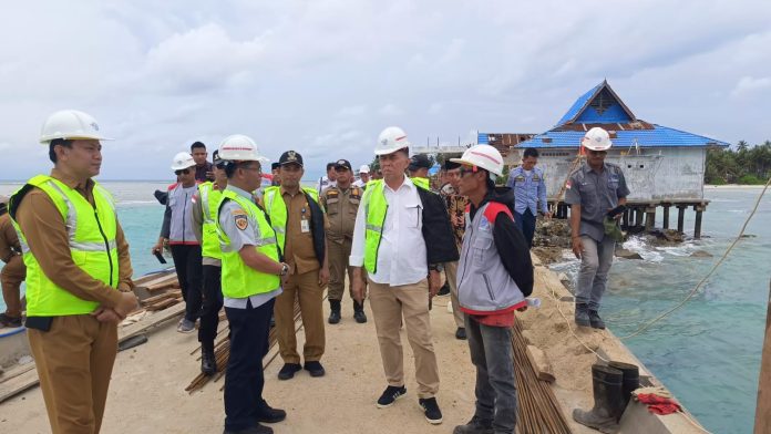 Ket Foto : Bupati Natuna Wan Siswandi saat meninjau progres pembangunan pelabuhan Perintis di Midai