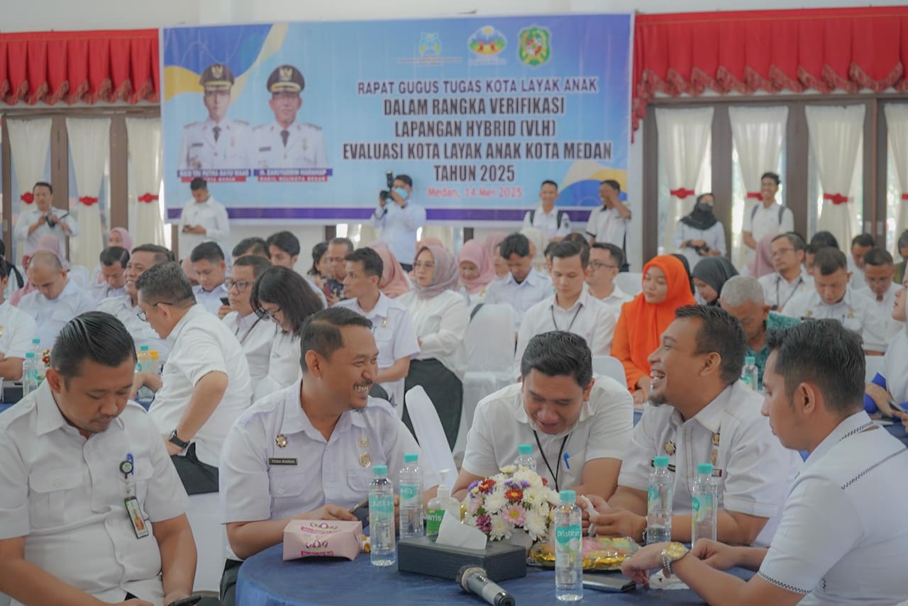 “Dan Pemko komit menjadikan Medan sebagai Kota Layak Anak,” tegas Wali Medan Rico Tri Putra Bayu Waas saat menghadiri Verifikasi Lapangan Hybrid (VLH) Evaluasi Kota Layak Anak (KLA) 2025 di Kota Medan, Rabu, 14 Mei 2025, di Gedung Serbaguna PKK Kota Medan.