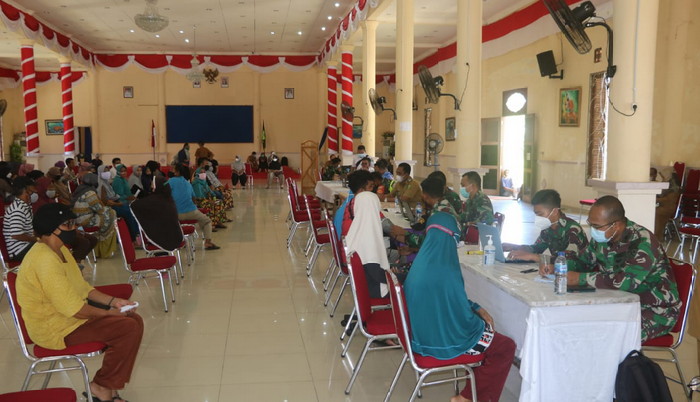 “Kita menurukan 3 orang dokter, 7 orang perawat sebagai vaksinator, 2 orang Nakes dari Yonkomposit dan 2 orang Babinpotdirga melaksanakan pengamanan,”ungkap Mayor Kes dr. A. Ratno Wahyudono.