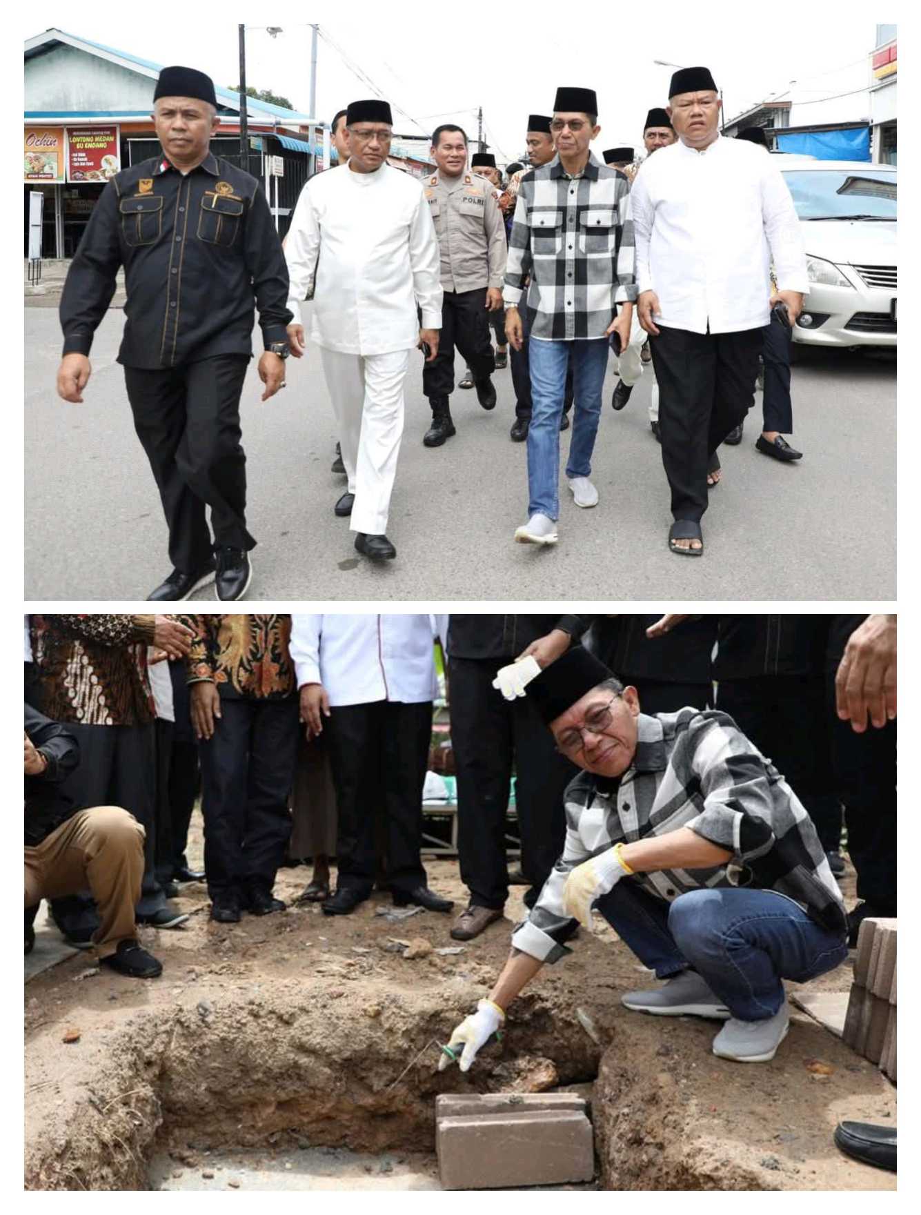 FOTO : Wali Kota Batam, Amsakar Achmad, secara resmi meletakkan batu pertama pembangunan Rumah Qur’an Badan Wakaf Indonesia (BWI) Kota Batam) di Jalan Tiban McDermott, Tiban Indah, Sekupang, Sabtu (22/11/2025).