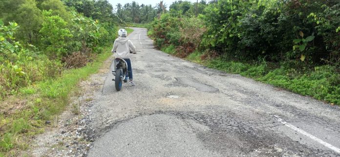 Pasalnya, rusak sejak tahun 2017 lalu namun hingga saat ini belum ada tanda-tanda jalan tersebut akan diperbaiki.